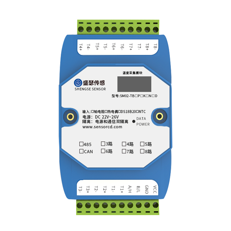 盛瑟传感的8通道温度采集模块采用RS485-modbus-RTU标准通信,PT100输入,可与PC,组态,PLC等组网通信,带通信指示灯(电源指示/常亮+数据指示/闪亮),带显示屏实时显示温度信息,RS485电源输入和通信均带隔离,保护数据的精准度又保障变送器的安全工作,广泛应用于各种工业现场测温(高精度/高速率/高稳定性),各种高低温测量,正常使用保修1年。
